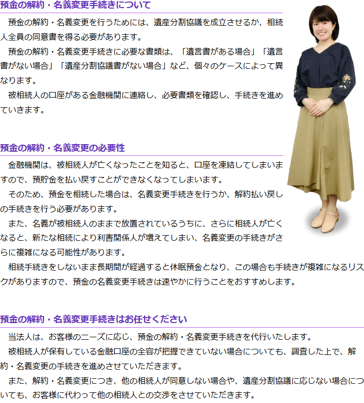 蒲田の『預金・貯金の解約・名義変更』はお任せください